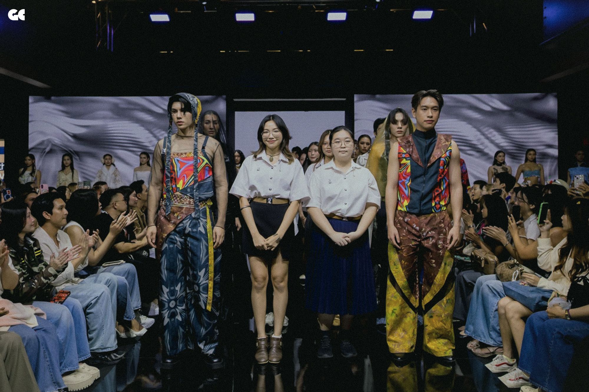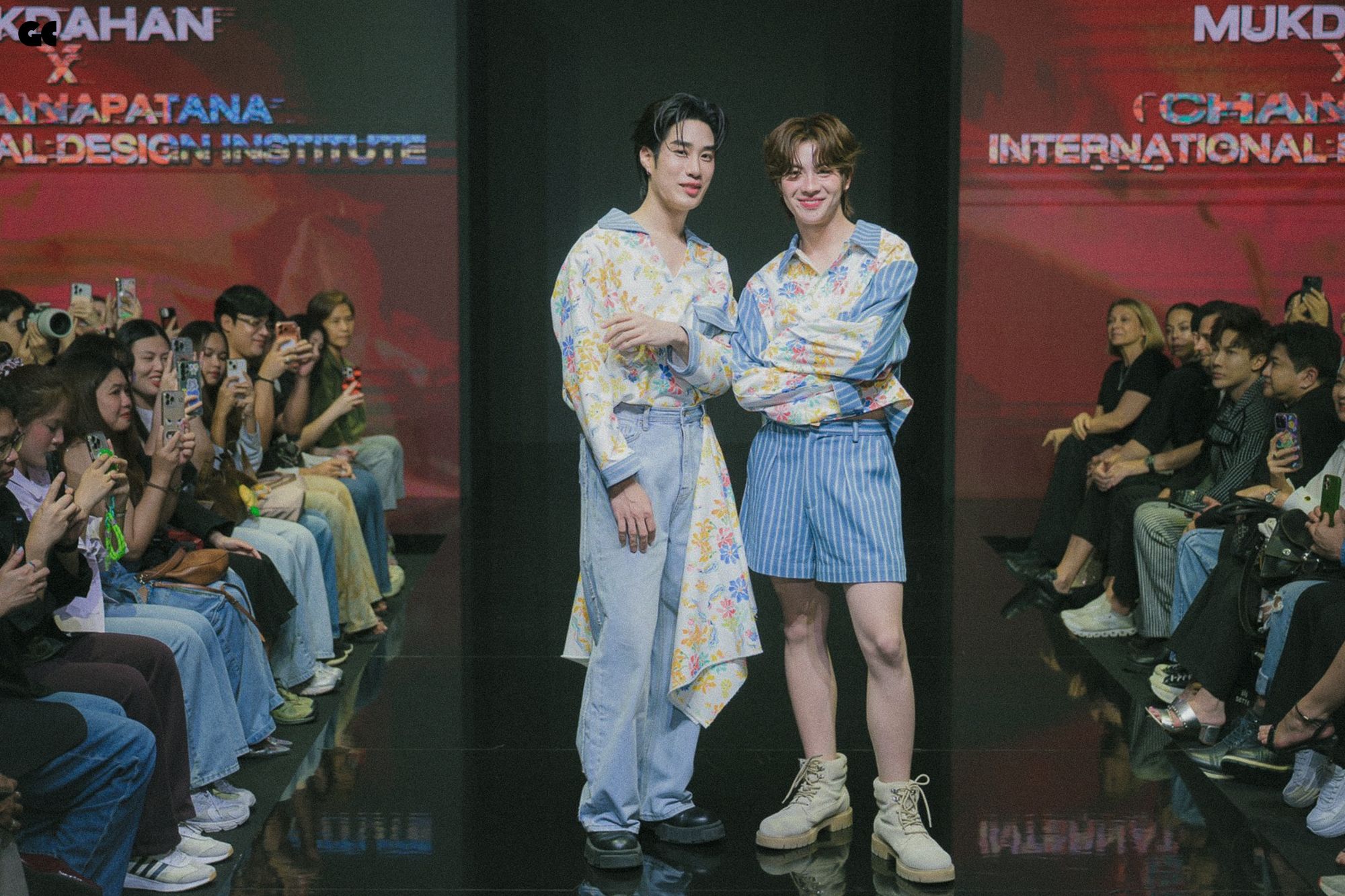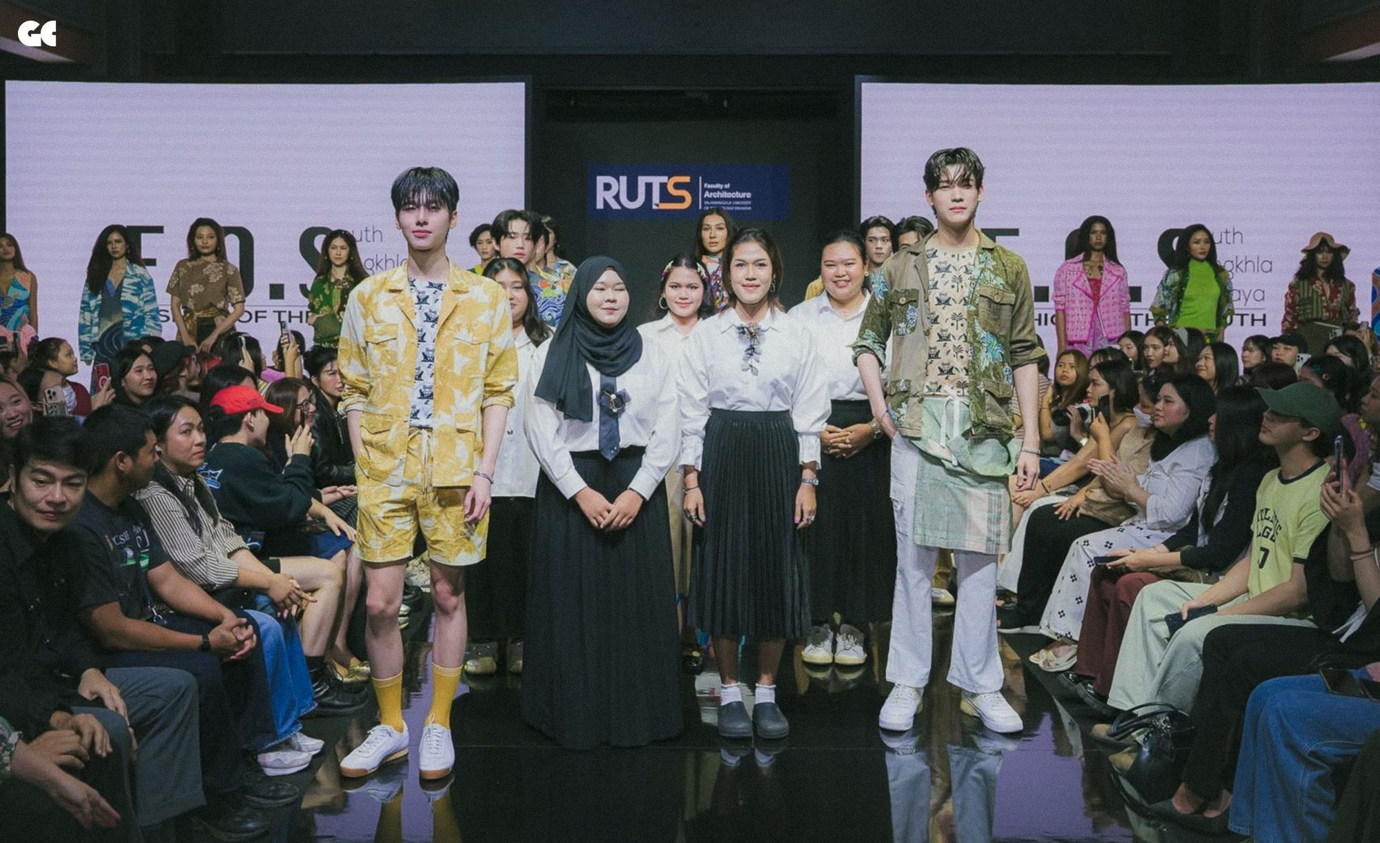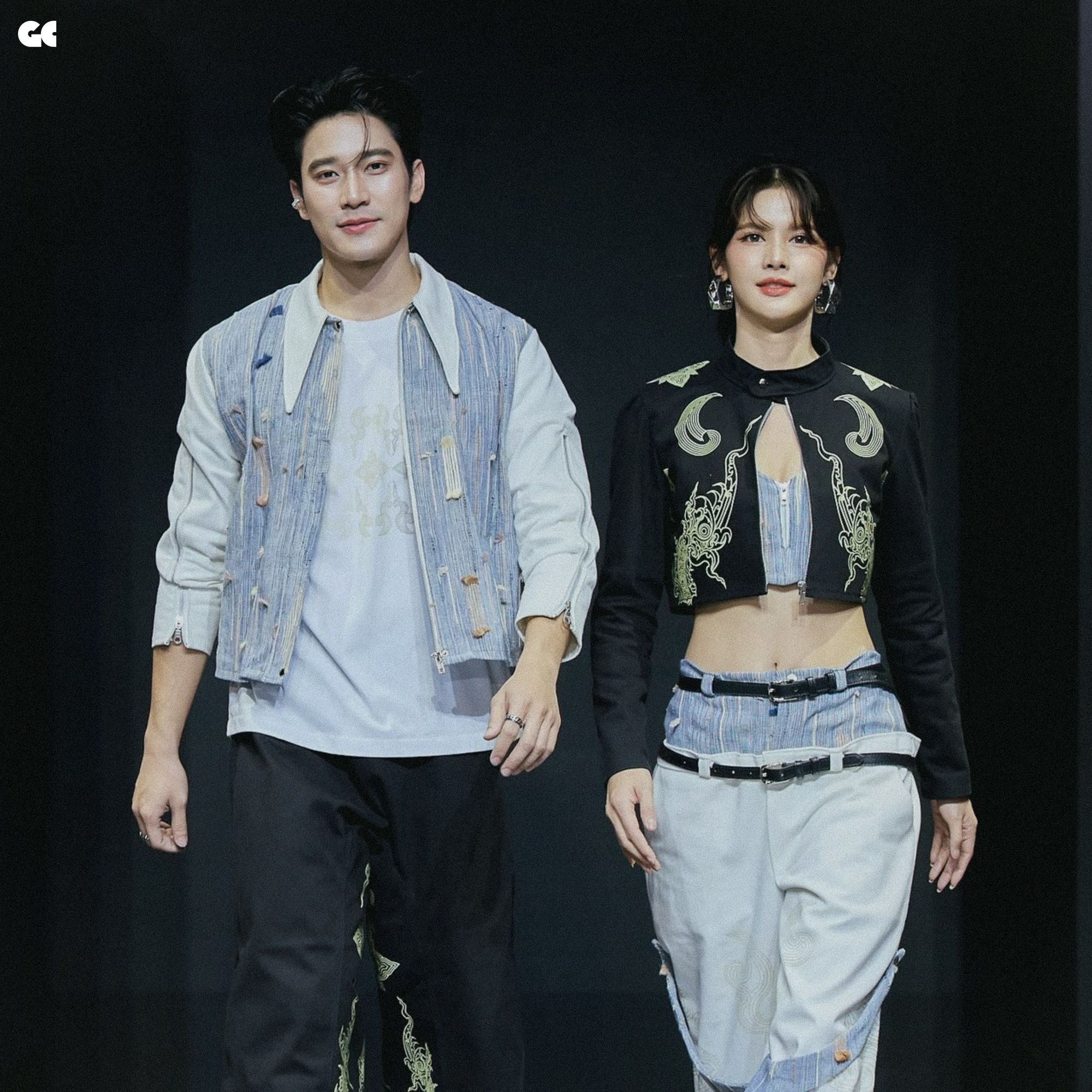เปิดรันเวย์ด้วยมหาวิทยาลัยเทคโนโลยีราชมงคลพระนครนำเสนอผลงานภายใต้แนวคิด Circular Economy แรงบันดาลใจจากการนำขยะแฟชั่น และวัสดุรีไซเคิล มาต่อยอดเป็นผลงานอันทรงคุณค่า ผ่านทุนทางวัฒนธรรมและภูมิปัญญาพื้นบ้าน ถ่ายทอดงานหัตถกรรมและเทคนิคดั้งเดิม โดยมี “เก่ง–หฤษฎ์, โยชิ-รินรดา” ร่วมเป็นส่วนหนึ่งของผลงานในโชว์เปิด สร้างสรรค์จากผ้าซิ่นตีนแดง บุรีรัมย์