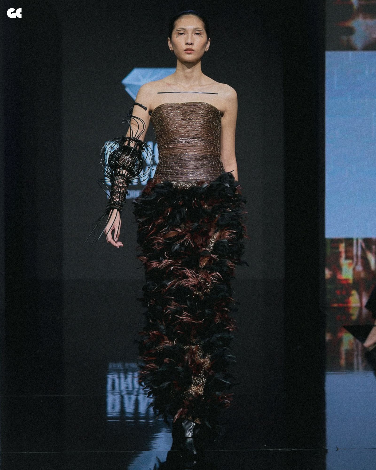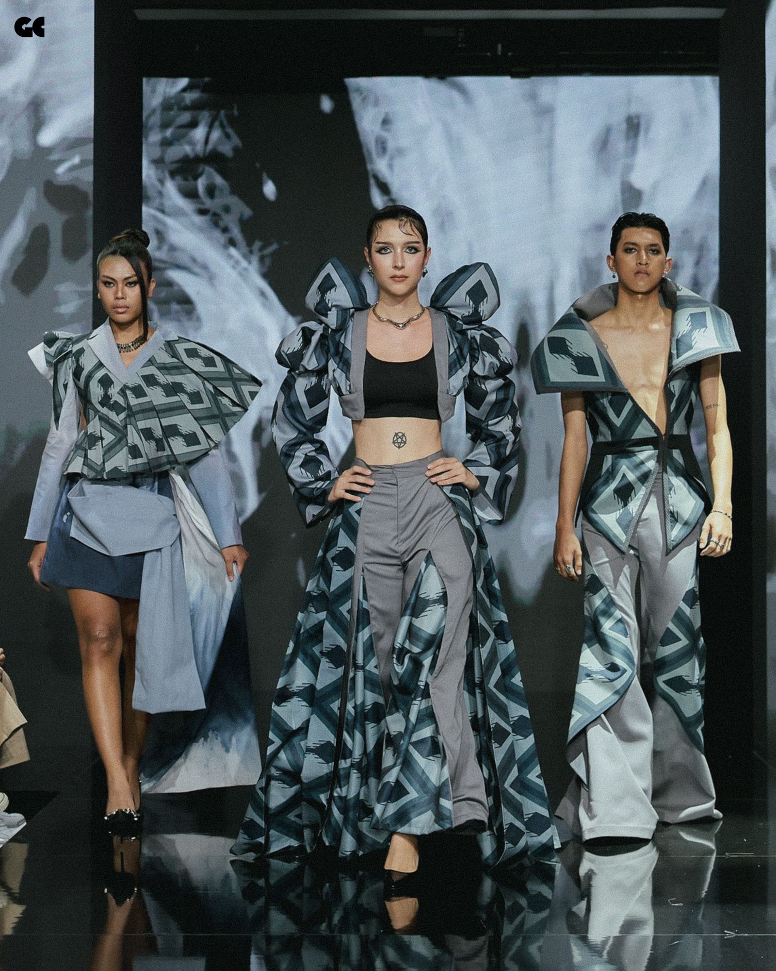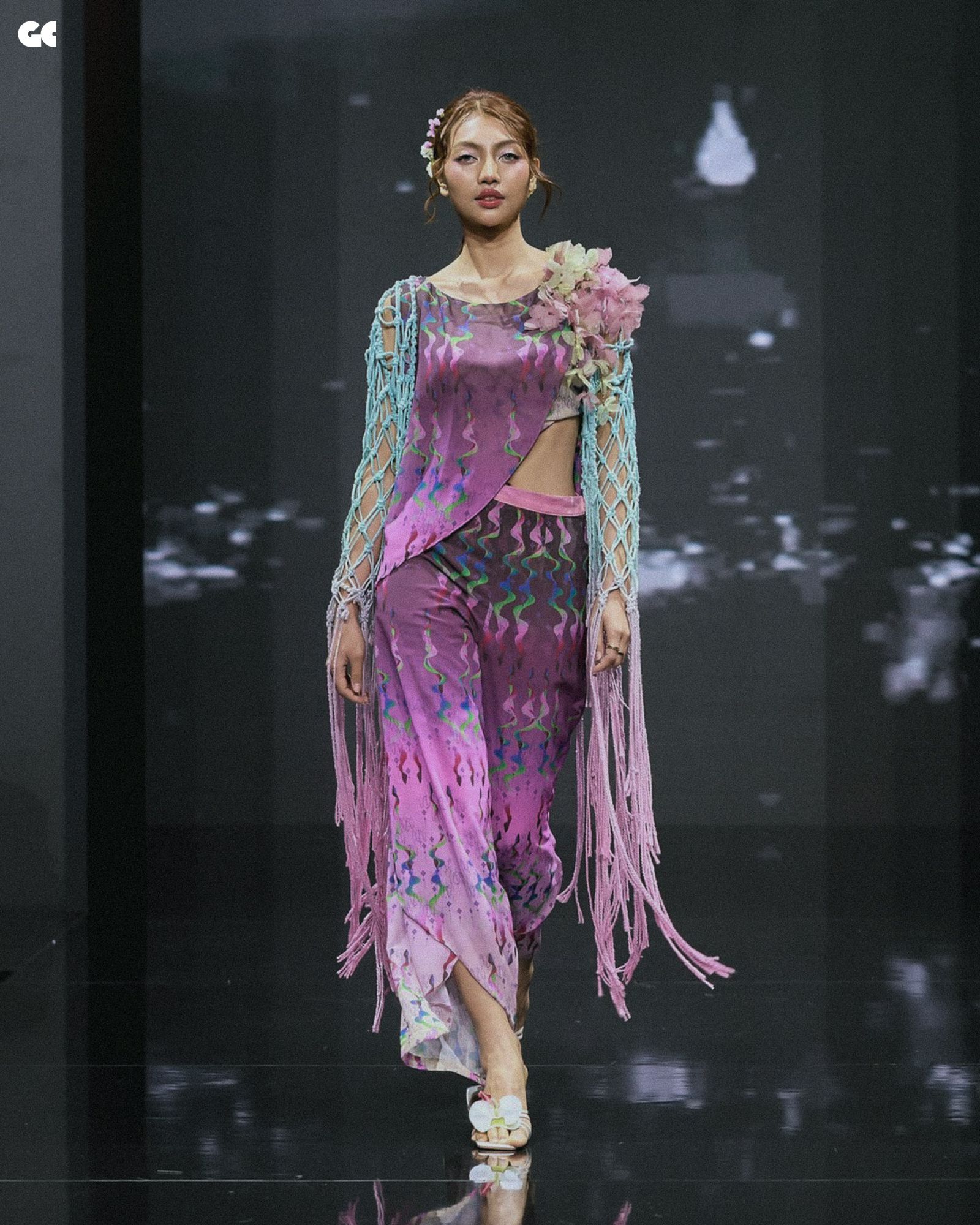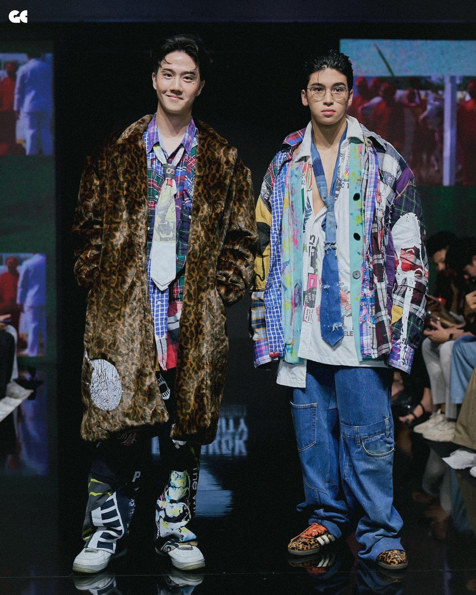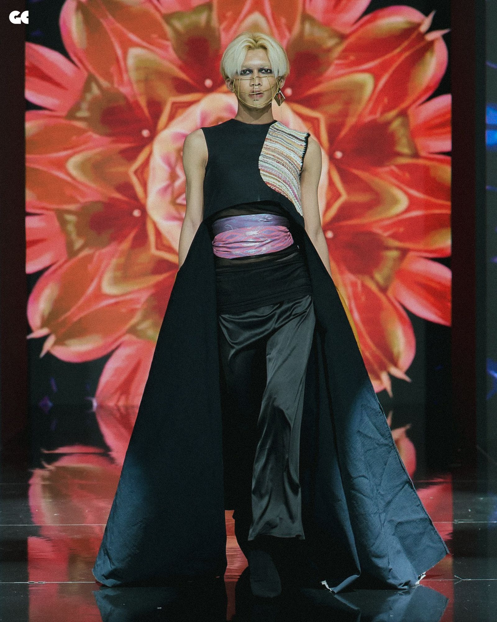 เปิดรันเวย์ด้วยมหาวิทยาลัยเทคโนโลยีราชมงคลพระนครนำเสนอผลงานภายใต้แนวคิด Circular Economy แรงบันดาลใจจากการนำขยะแฟชั่น และวัสดุรีไซเคิล มาต่อยอดเป็นผลงานอันทรงคุณค่า ผ่านทุนทางวัฒนธรรมและภูมิปัญญาพื้นบ้าน ถ่ายทอดงานหัตถกรรมและเทคนิคดั้งเดิม โดยมี “เก่ง–หฤษฎ์, โยชิ-รินรดา” ร่วมเป็นส่วนหนึ่งของผลงานในโชว์เปิด สร้างสรรค์จากผ้าซิ่นตีนแดง บุรีรัมย์