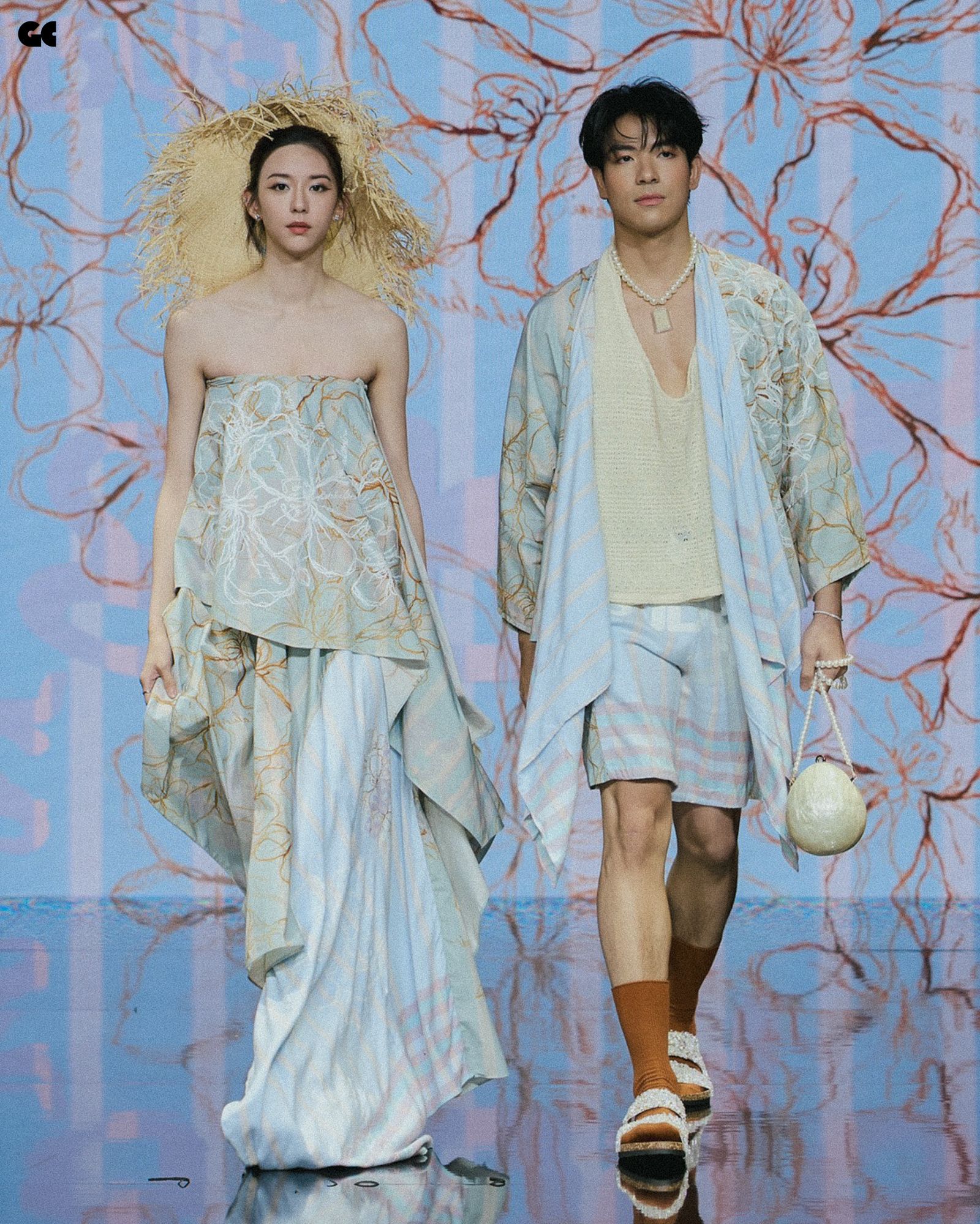 “The Legacy of Ananta Siam” เรื่องราวมรดกวัฒนธรรมสุดตระการตา สู่ลายผ้าทอพื้นเมืองจากจังหวัดสุรินทร์ จากฝีมือนักศึกษาคณะศิลปกรรม มหาวิทยาลัยราชมงคลธัญบุรี มาพร้อมกับผ้าฝ้ายลายลูกแก้ว จังหวัดศรีสะเกษสำหรับคอลเล็กชั่นพิเศษโชว์เปิด ได้ Latte - Kim จาก Domundi มาถ่ายทอด