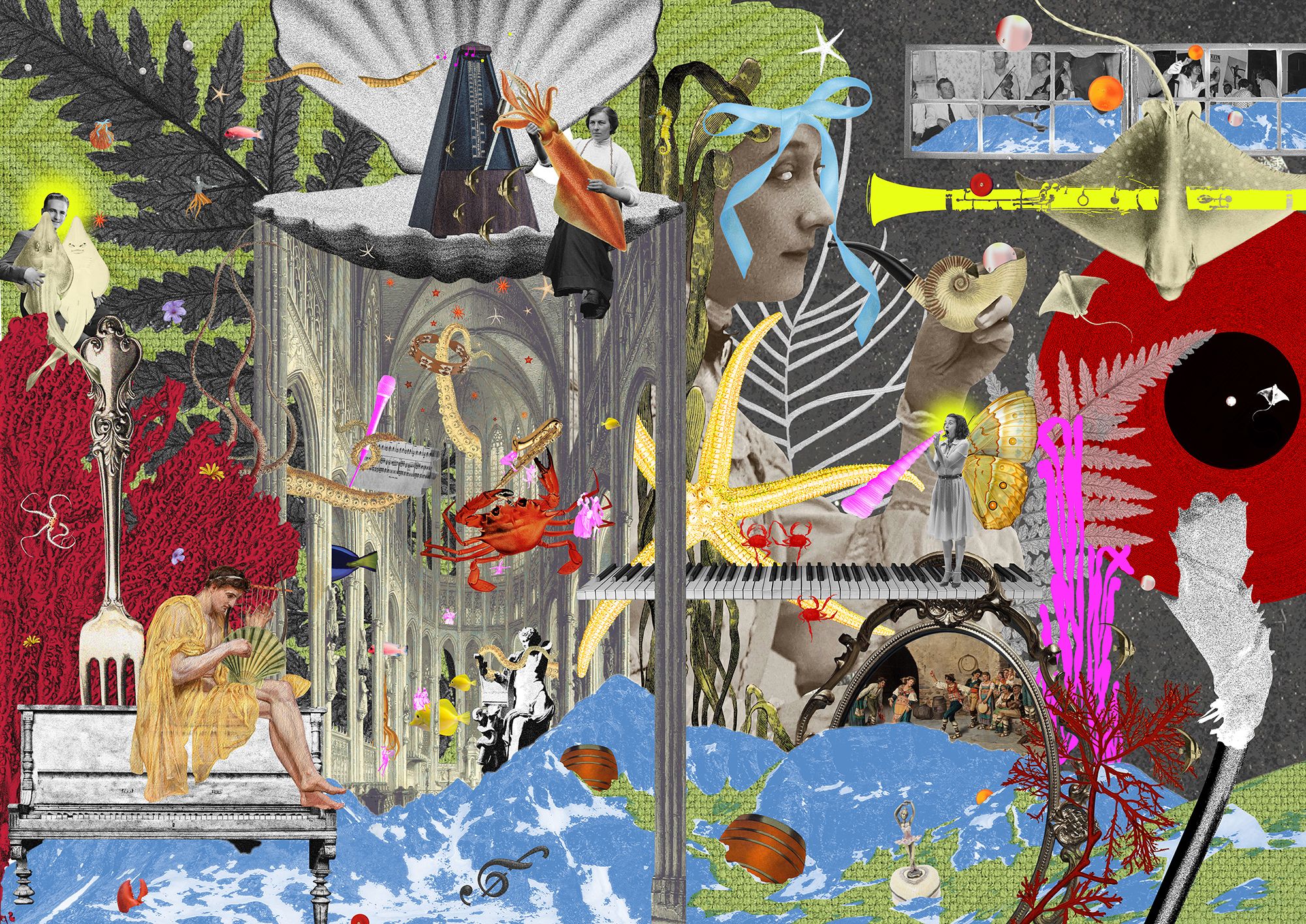 อีกองค์ประกอบหนึ่ง เกิดขึ้นจากความรู้สึกที่อยากทำงานเกี่ยวกับดนตรี มี้เลยลองตั้งคำถามกับตัวเองว่า “ดนตรีแบบไหนที่ยังคงเป็นตัวเราอยู่” และคำตอบนั้นก็พาไปหาเจ้าหญิงแอเรียล ตัวละครเจ้าหญิงที่มี้ชอบมากที่สุดในวัยเด็ก ในเรื่องราวของแอเรียล ดนตรีเป็นแก่นสำคัญ ทั้งความรักในการร้องเพลงของตัวละคร และการแอบบรรเลงดนตรีใต้ท้องทะเลผ่านสัตว์ทะเลหลากหลายชนิด งานชิ้นนี้จึงออกมาในรูปแบบของภาพที่มีสัตว์ทะเลเป็นองค์ประกอบหลัก โดยมีเครื่องดนตรีเป็นส่วนหนึ่งของท่าทางหรือร่างกายของพวกมัน ภาพรวมของงานตั้งใจให้ดูหม่นลงเล็กน้อย เพื่อให้สอดคล้องกับเส้นเรื่องและอารมณ์ระหว่างทางที่ต้องการเล่า