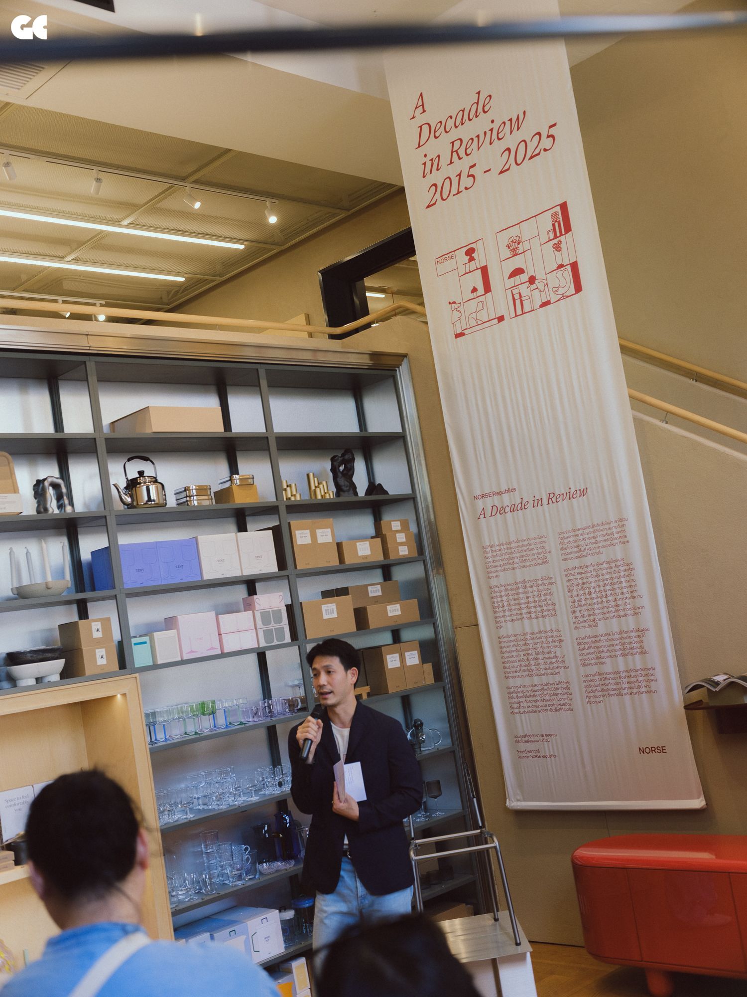 มากกว่าการยืนระยะยาวของ NORSE Republics สำหรับการครบรอบ 10 ปี อ๋องพยายามนำความเป็นไลฟ์สไตล์เข้ามาสู่งานดีไซน์เพื่อให้คนทุกกลุ่มช่วงวัยเข้าใจงานออกแบบง่ายมากขึ้น การฉลองครบรอบปีที่ 10 ในครั้งนี้ ทำให้เราได้เห็นความเปลี่ยนแปลงและอะไรใหม่ ๆ จาก NORSE Republics ทั้งการปรับโฉมใหม่ของ NORSE Store ที่สุขุมวิท 49 เพิ่ม Book Corner ที่เลือกหนังสือประเภทงานดีไซน์ที่เน้นรูปภาพเข้าใจง่าย การจับมือกับ O.B.A. แบรนด์เครื่องหอมสัญชาติไทย สร้างสรรค์น้ำหอมกลิ่น ROSEN สำหรับใช้ภายในบ้านซึ่งจะเป็นกลิ่นเฉพาะของ NORSE Republics และชวน BHBH (Bloody Hell Big Head) หรือ เบนซ์ – ธนวัต ศักดาวิษรักษ์ ศิลปินนัดวาดภาพประกอบมาร่วมออกแบบคอลเลกชันลิมิเต็ดอิดิชันลายพิเศษสำหรับการครบรอบ 10 ปี ส่วนไฮไลต์สุดท้ายที่ไม่ควรพลาดเวลาแวะมาที่ NORSE Store ก็คือนิทรรศการที่อ๋องนำเฟอร์นิเจอร์ของ ฌอง พรูเว่ (Jean Prouvé) มาจัดแสดงบนชั้นสองของ NORSE Store