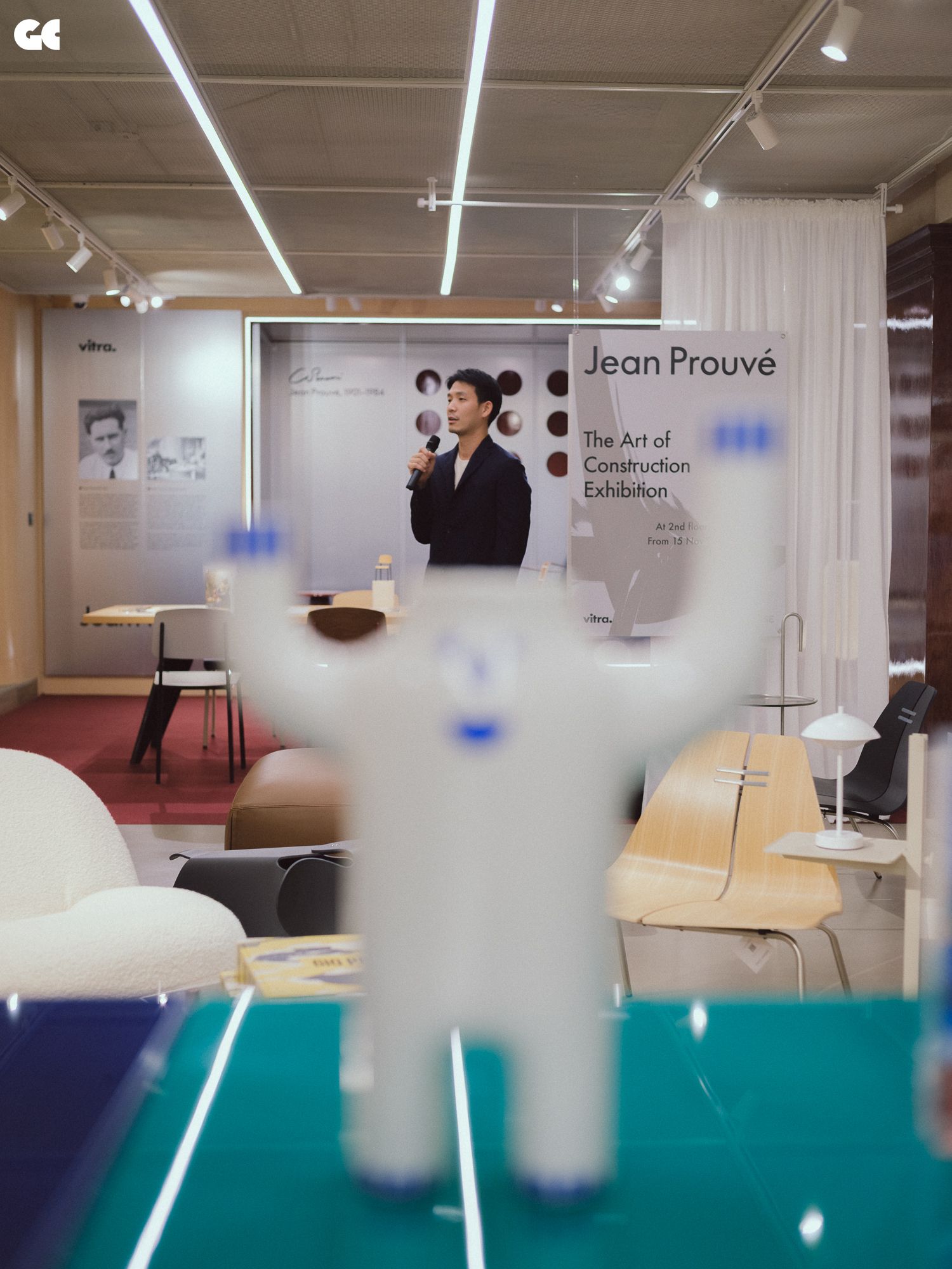 “ส่วนที่ผมอยากนำเสนอมาก ๆ ก็คือนิทรรศการของฌอง พรูเว่ เขาเป็นเหมือนดีไซเนอร์ในดวงใจของผม งานนี้เหมือนเป็นครั้งแรกใน Southeast Asian เลยก็ได้นะที่มีนิทรรศการของเขา มันสำคัญกับงานดีไซน์ และสำคัญกับดีไซเนอร์รุ่นใหม่ งานนี้เหมือนชวนให้ทุกคนได้มาเรียนรู้ ซึ่งกว่าจะได้จัดนิทรรศการนี้จริง ๆ มันผ่านขั้นตอนมาเยอะมาก เราขอไปทาง Vitra แล้วเขาก็ต้องช่วยเราประสานต่ออีกกว่าจะมาเป็นนิทรรศการเล็ก ๆ บนชั้นสองที่ให้ทุกคนได้ดู มันเลยรู้สึกอิ่มใจที่ได้ทำ”