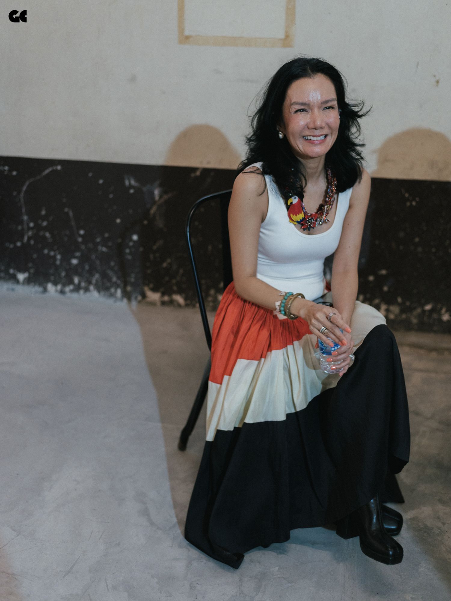 นี่คือนิทรรศการเดี่ยว “Mitta del Santi” ของ มุก–เพลินจันทร์ วิญญรัตน์ ผู้ซึ่งใครหลายคนอาจนิยามว่าเป็น “ดีไซเนอร์” “เจ้าของแบรนด์” หรือ “ศิลปินผู้สร้างงานชิ้นใหญ่ถึง 6.5 x 25 เมตรที่ศูนย์สิริกิติ์” แต่สำหรับเธอแล้ว คำจำกัดความที่แท้จริงกลับเรียบง่ายกว่านั้น—