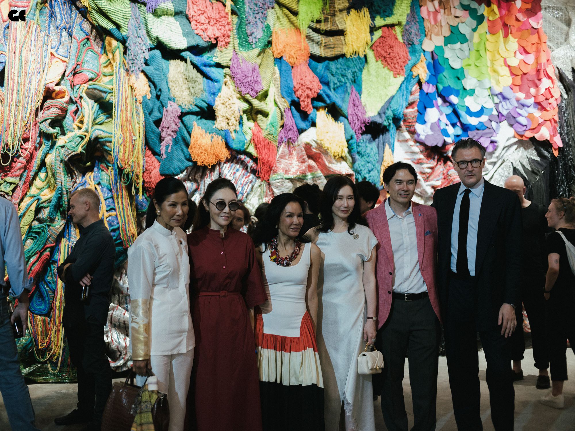 ที่สำคัญไปกว่านั้น กระบวนการสร้างงานยังเป็นเครื่องมือเชื่อมโยงผู้คน มุกทำงานร่วมกับกลุ่มนักทอผ้าในชุมชน เพื่อยกระดับงานฝีมือให้กลายเป็นสายใยทางสังคม งานศิลปะของเธอจึงไม่ได้เพียงทอด้วยเส้นใย แต่ยังถักทอด้วยความสัมพันธ์ระหว่างผู้คนด้วย