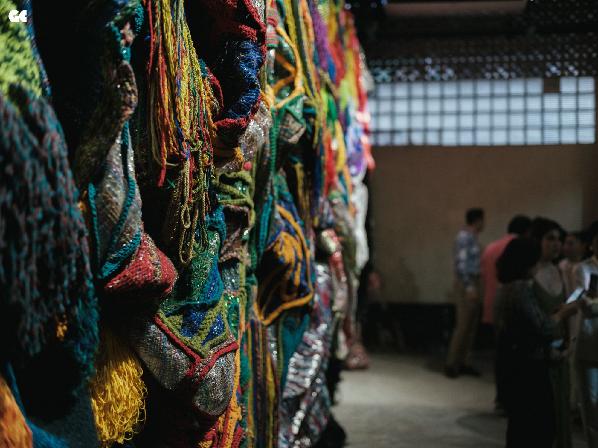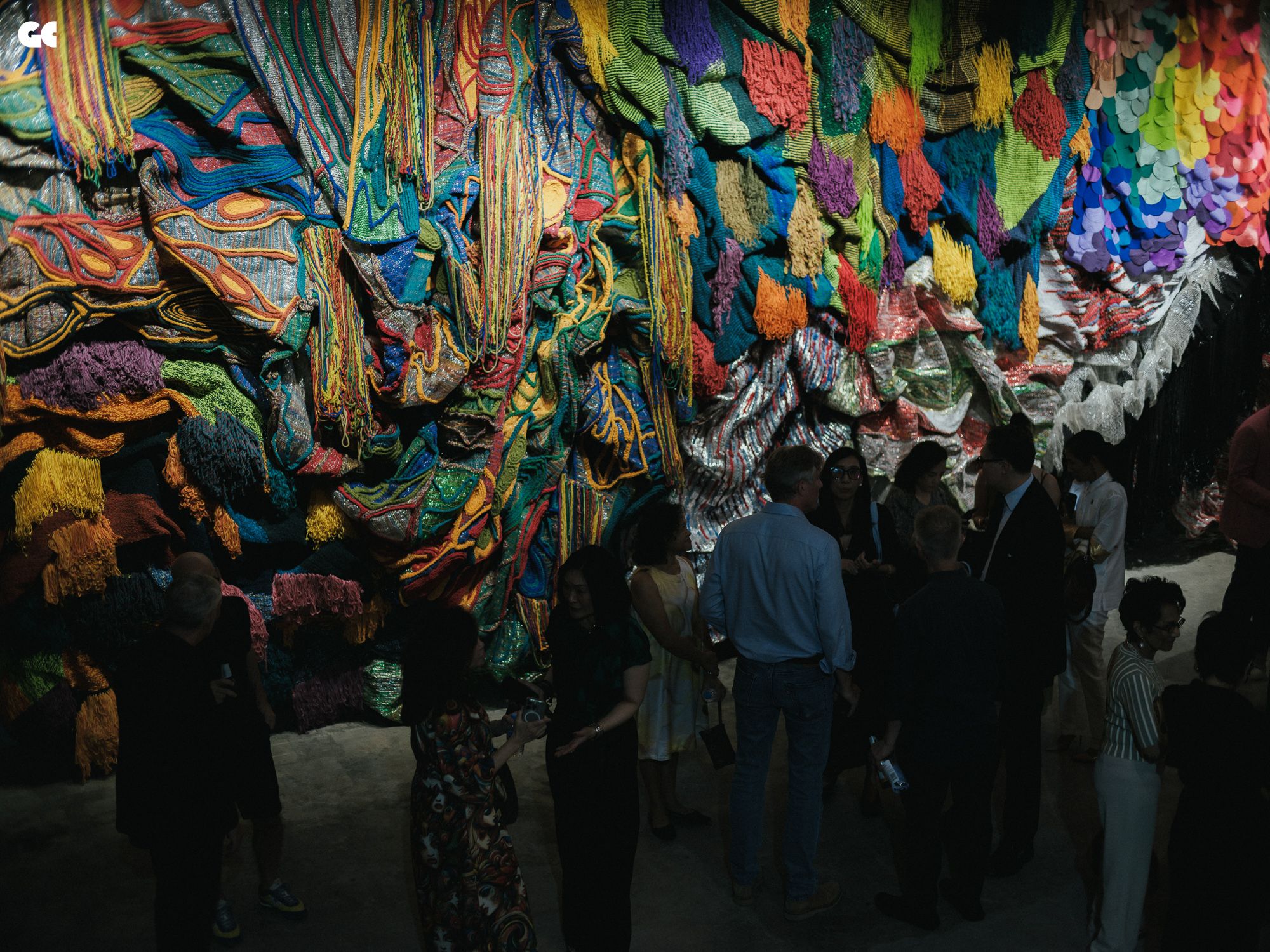 วันนี้ พื้นที่แห่งนั้นกลับมีชีวิตอีกครั้ง ราวกับภาชนะที่รองรับทั้งความทรงจำและจิตวิญญาณใหม่ ๆ ตรงกลางห้องอันกว้างใหญ่คือผลงานศิลปะสิ่งทอขนาดมหึมา ถักทอขึ้นจากเศษผ้า วัสดุเหลือใช้ และเรื่องราวที่รอคอยการค้นพบ ผลงานของศิลปินสิ่งทอแถวหน้าของไทย ที่หลายคนอาจเคยสัมผัสมาแล้วโดยไม่รู้ตัว