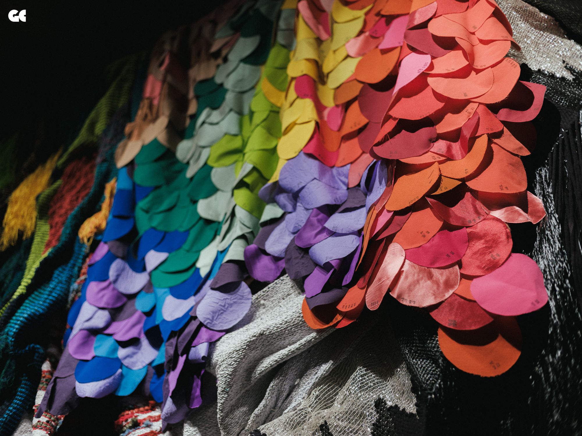 “พี่ไม่ได้ซื้อเส้นใยมาแล้วมาทอ พี่ใช้สิ่งรอบตัวทำเป็นวัตถุดิบก่อน กระบวนการคือเอาขยะหรือสิ่งเหลือใช้มาไว้ตรงหน้า แล้วค่อยคิดว่าเราจะแปลงมันเป็นอะไรได้บ้าง”