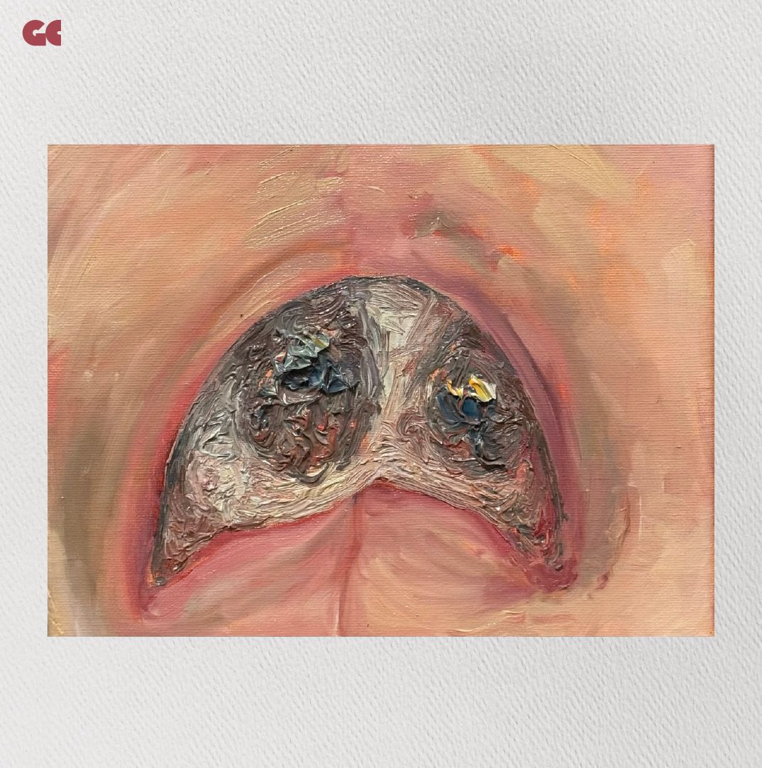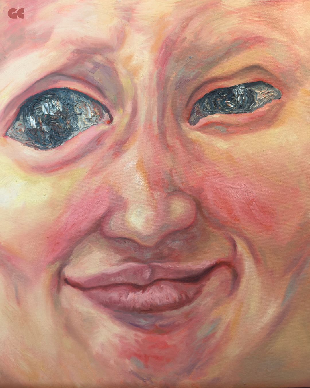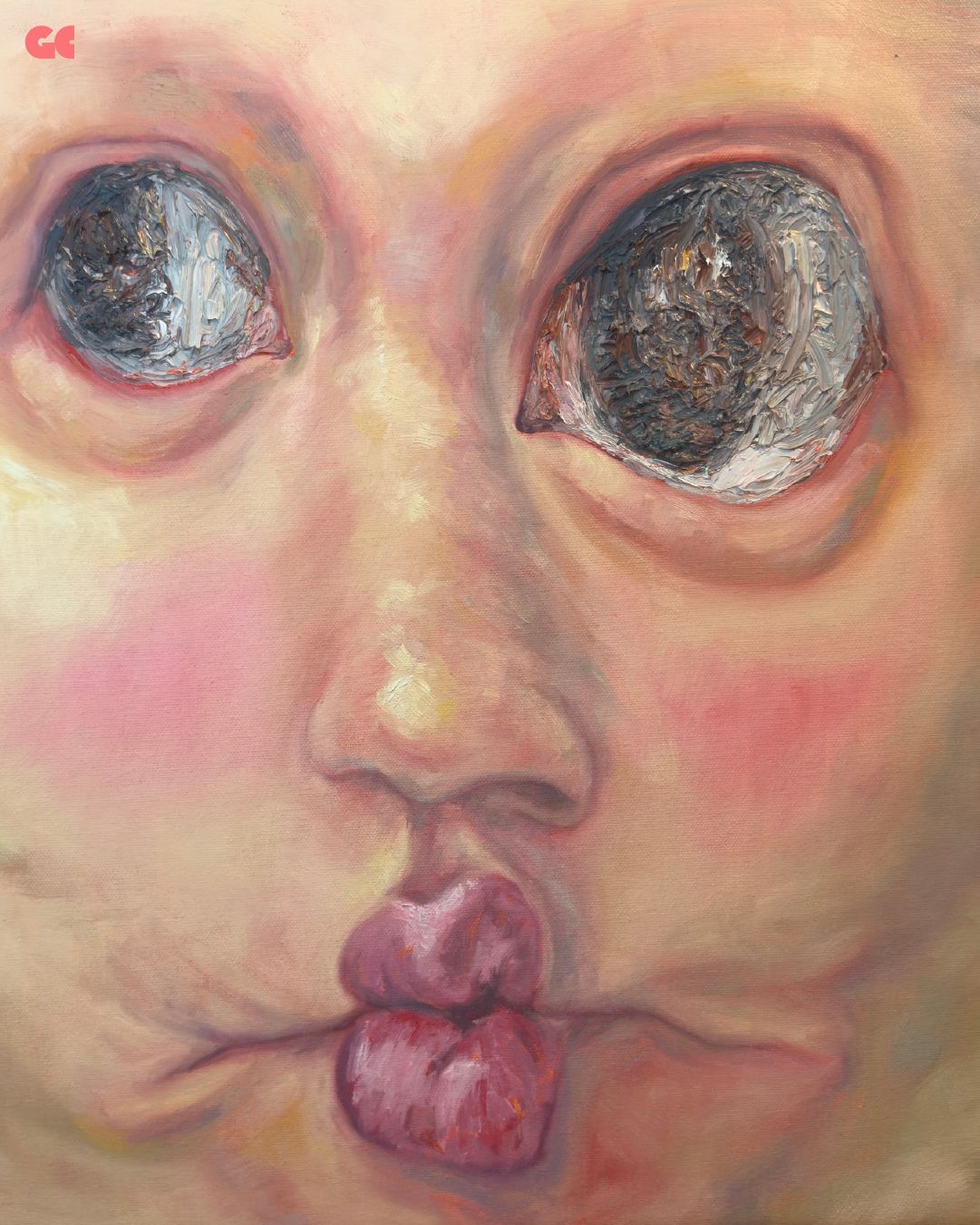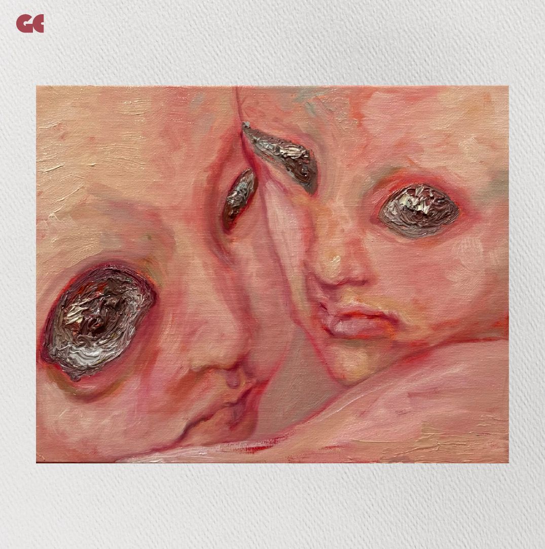 “ในช่วงแรกก็ยังเป็นภาพวาดปกติ แต่หลังจากที่เราได้ใช้เวลากับตัวเองหน้ากระจกไปนาน ๆ เรากลับมองเห็นแต่จุดบกพร่องบนใบหน้า และจุดบกพร่องนั้นมันขยายใหญ่ขึ้นเรื่อย ๆ เรามัวแต่ไปโฟกัสกับมันจนเหลือแต่ความอัปลักษณ์ของตัวเอง ภาพที่เราวาดมันเลยค่อย ๆ บิดเบี้ยว บิดเบือน และแปลกประหลาดขึ้นเรื่อย ๆ”