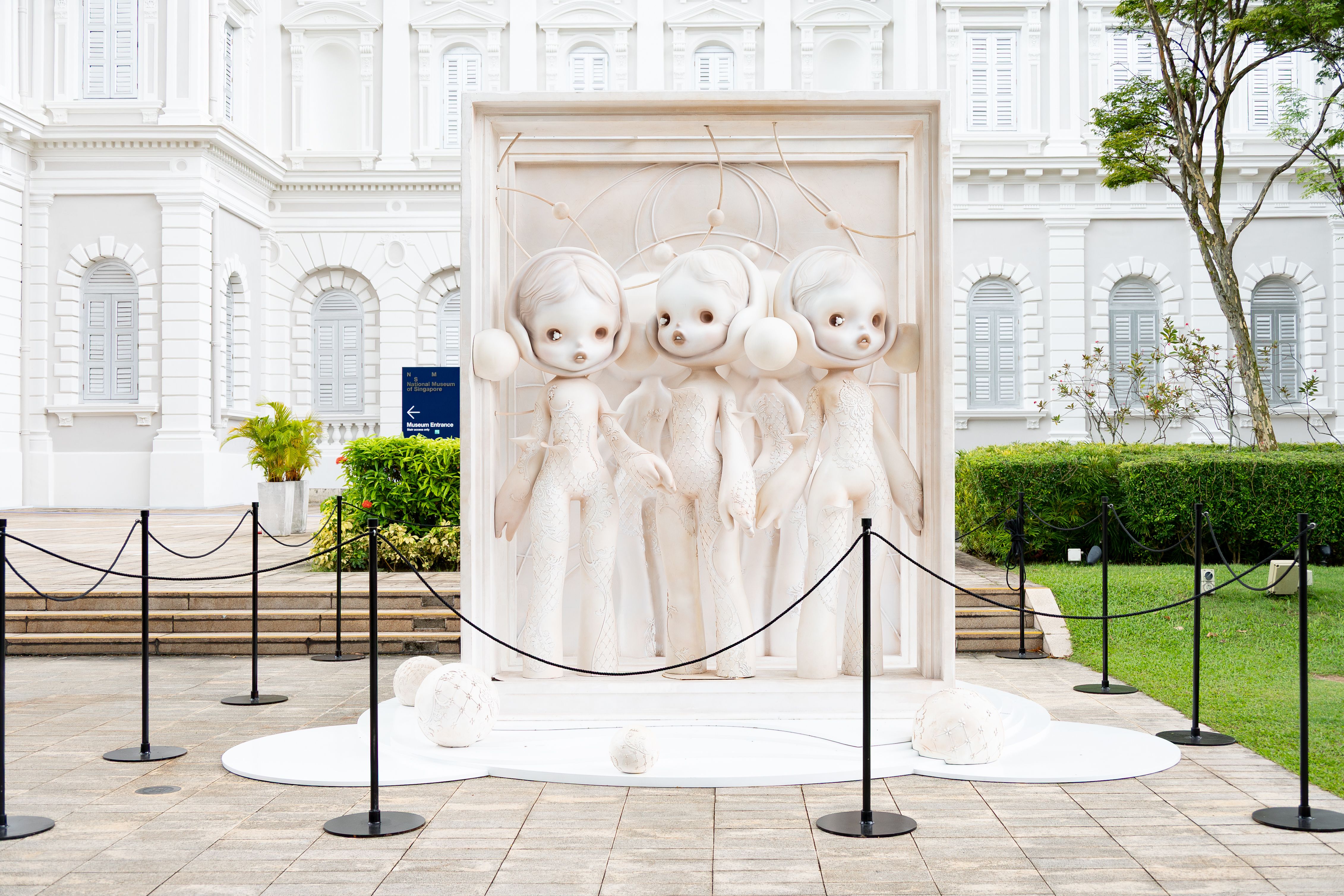 พิพิธภัณฑสถานแห่งชาติสิงคโปร์ (National Museum of Singapore) เป็นแลนด์มาร์กแห่งสถาปัตยกรรมสุดคลาสสิกแสนงดงามจากยุคอาณานิคม ส่วน SKULLPANDA คือคาแรกเตอร์ตากลมโตแสนจะน่ารักที่มักอยู่ในชั้นสะสมของวัยรุ่น “นักจุ่ม” กล่องสุ่มอาร์ตทอย… ในวันนี้โถงทางเข้าสุดเคร่งขรึมซึ่งบรรจุความทรงจำร่วมแห่งชาติสิงคโปร์ กำลังฉายภาพแห่งอนาคต ภาพเขาวงกตแห่งการเดินทางภายในจิตใจ และวัตถุทรงกลมดูล้ำสมัย… ถ้าไม่เรียกว่านี่คือการโคจรมาเจอกันแห่งยุคก็ไม่รู้ว่าจะเรียกว่าอย่างไรแล้ว…