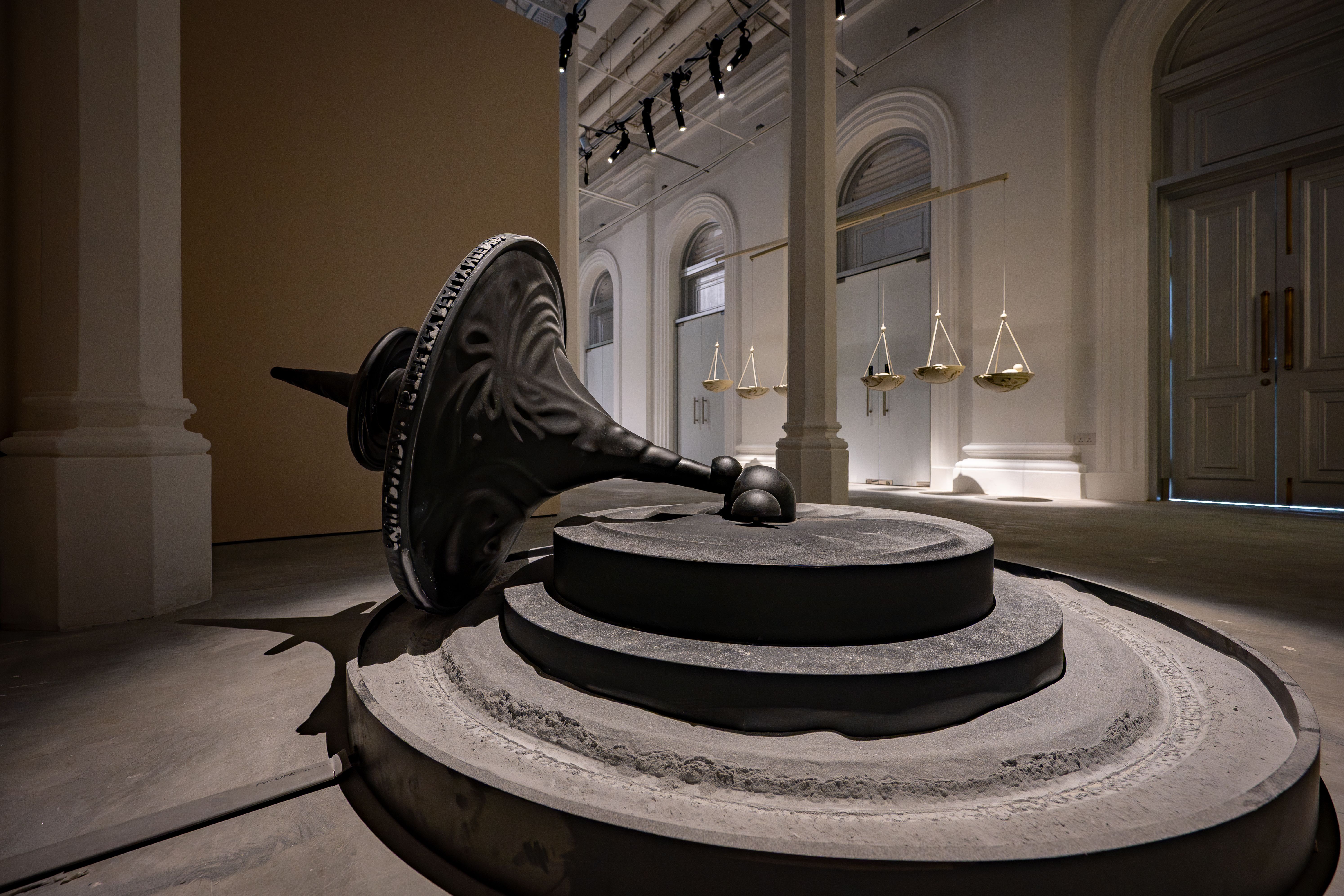 ในโซน Rules (กฎเกณฑ์) ลูกข่างขนาดใหญ่จะหมุนไปเรื่อย ๆ และตาชั่งที่เอนเอียงหมิ่นเหม่ สำรวจเรื่องแรงโน้มถ่วงและระเบียบวินัย ชวนนึกย้อนไปถึงสิ่งที่ Kevin เล่า ว่า POP MART อาจมาเพื่อสร้างสมดุลระหว่างฝั่งตลาดแมส โดยเป็นที่ยอมรับจากโลกศิลปะไปด้วย