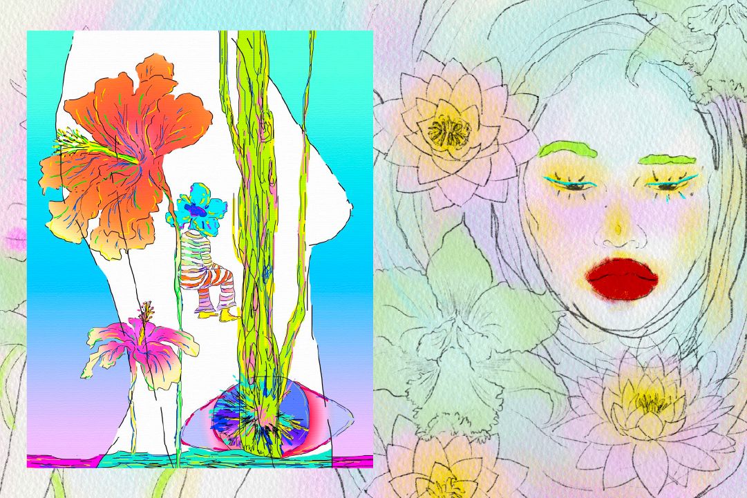 “เด็กหญิงใส่เสื้อสีขาวเสมอเปรียบเสมือนกับจิตใจอันบริสุทธิ์ที่พร้อมจะเติมเต็มสีสันหลากหลายเข้ามาในชีวิตไม่ว่าจะเป็นเรื่องดีหรือเรื่องร้าย” คือคำอธิบายสั้น ๆ ที่ Thani บอกกับเราถึงตัวละครหลักในภาพวาดของเธอที่มักปรากฏตัวในสภาพแวดล้อมที่แปลกประหลาดบ้างก็ชวนฝัน เช่น บนกองเก้าอี้ระเกะระกะสูงชัน กลางทุ่งหญ้าสูงรก และบึงบัวหนาทึบ เป็นต้น