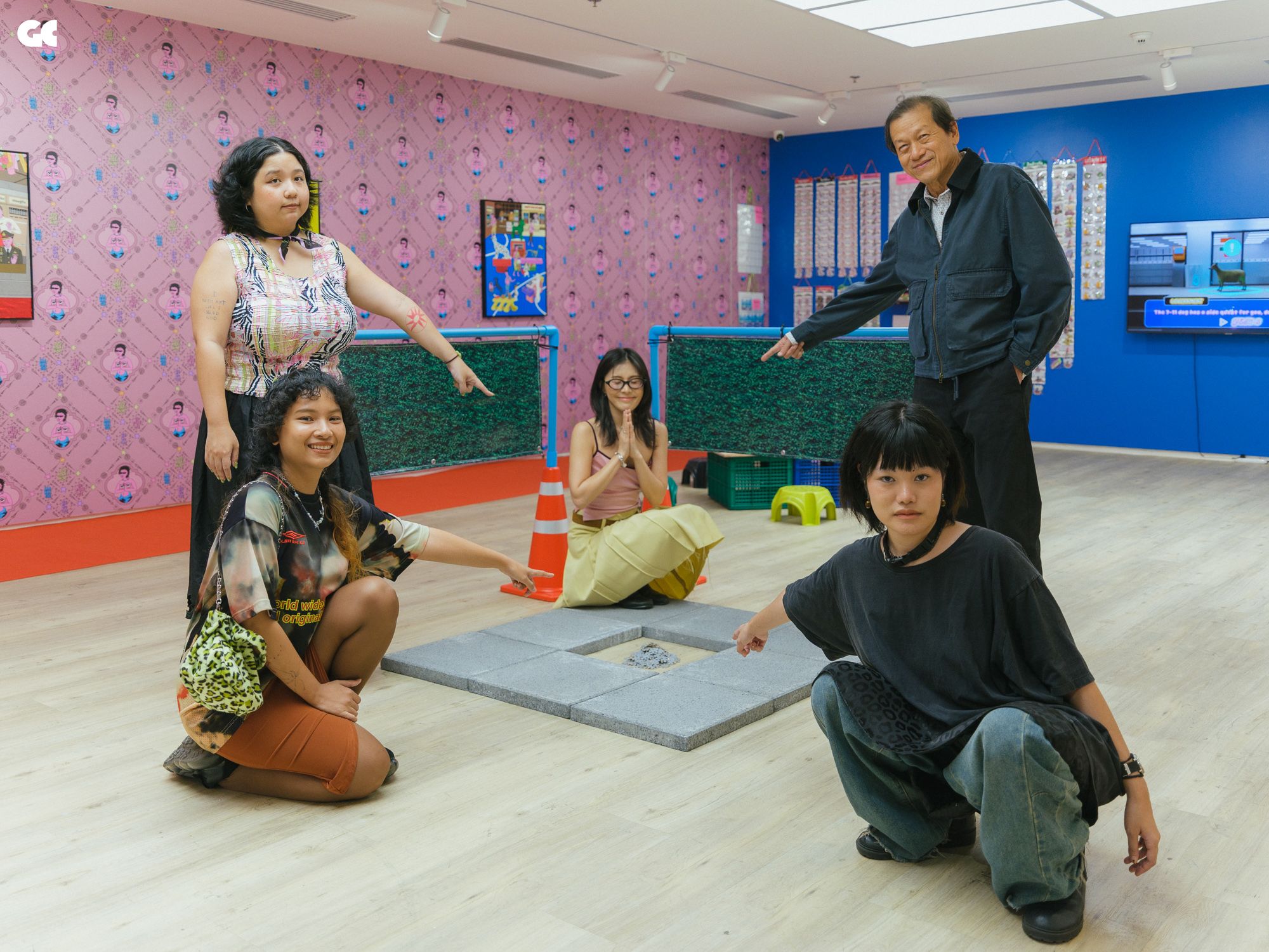 “เรารู้สึกว่านี่แหละคือความเป็นไทย ความพยายามที่จะก้าวไปข้างหน้า แต่กลับไม่ไปไหนสักที เราเลยอยากหยิบองค์ประกอบของ Liminal Space มาใช้ในพื้นที่ของนิทรรศการ เพื่อให้คนที่เข้ามาดูรู้สึกเหมือนเคยเห็นที่ไหนมาก่อน แต่กลับไม่คุ้นเลย เหมือนสิ่งเดิมถูกจัดวางใหม่ในมุมที่เราไม่เคยมองมาก่อน”