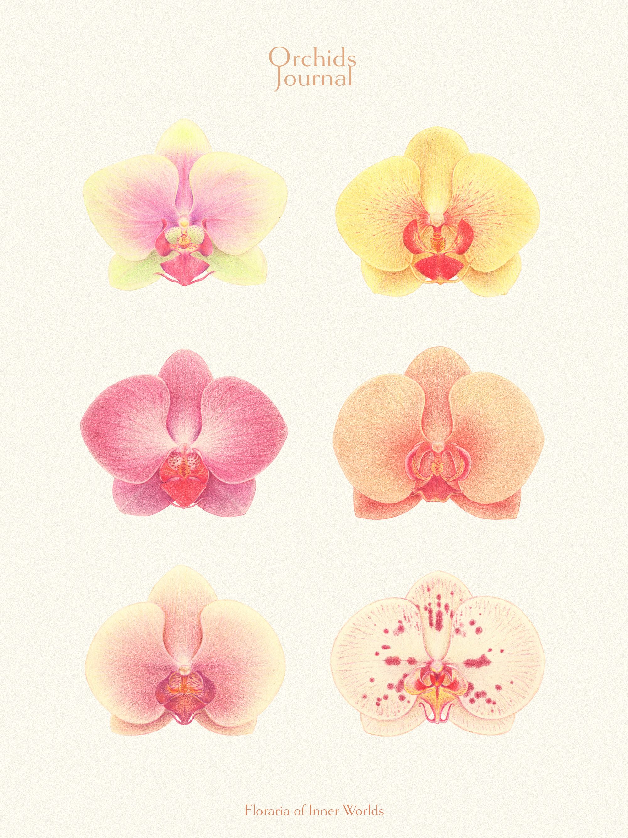 “คล้ายกับตอนที่เราได้เรียนรู้อารมณ์ของตัวเองผ่านการจดบันทึก การได้วาด Phalaenopsis ไปเรื่อย ๆ เลยเป็นเหมือนเครื่องมือหนึ่งที่เราใช้ในช่วงนี้ แต่ละดอกที่วาดเปรียบเสมือนสมุดบันทึกแต่ละหน้าที่เราใช้สำรวจตัวเองจากข้างใน ถึงแม้จะเป็นกล้วยไม้ชนิดเดียวกัน ถูกวาดในมุมมองเดียวกัน แต่ทุก ๆ ดอกมีเรื่องราวในแบบของตัวเอง เราใช้สีสัน-ลวดลายสื่อถึงสภาวะอารมณ์และพลังงานที่มีการเปลี่ยนแปลงไปตามช่วงเวลา จากช่วงที่เต็มไปด้วยคำถาม ความกลัว การเปลี่ยนแปลง สู่ความเข้าใจ และการได้ค้นพบอะไรบางอย่าง”