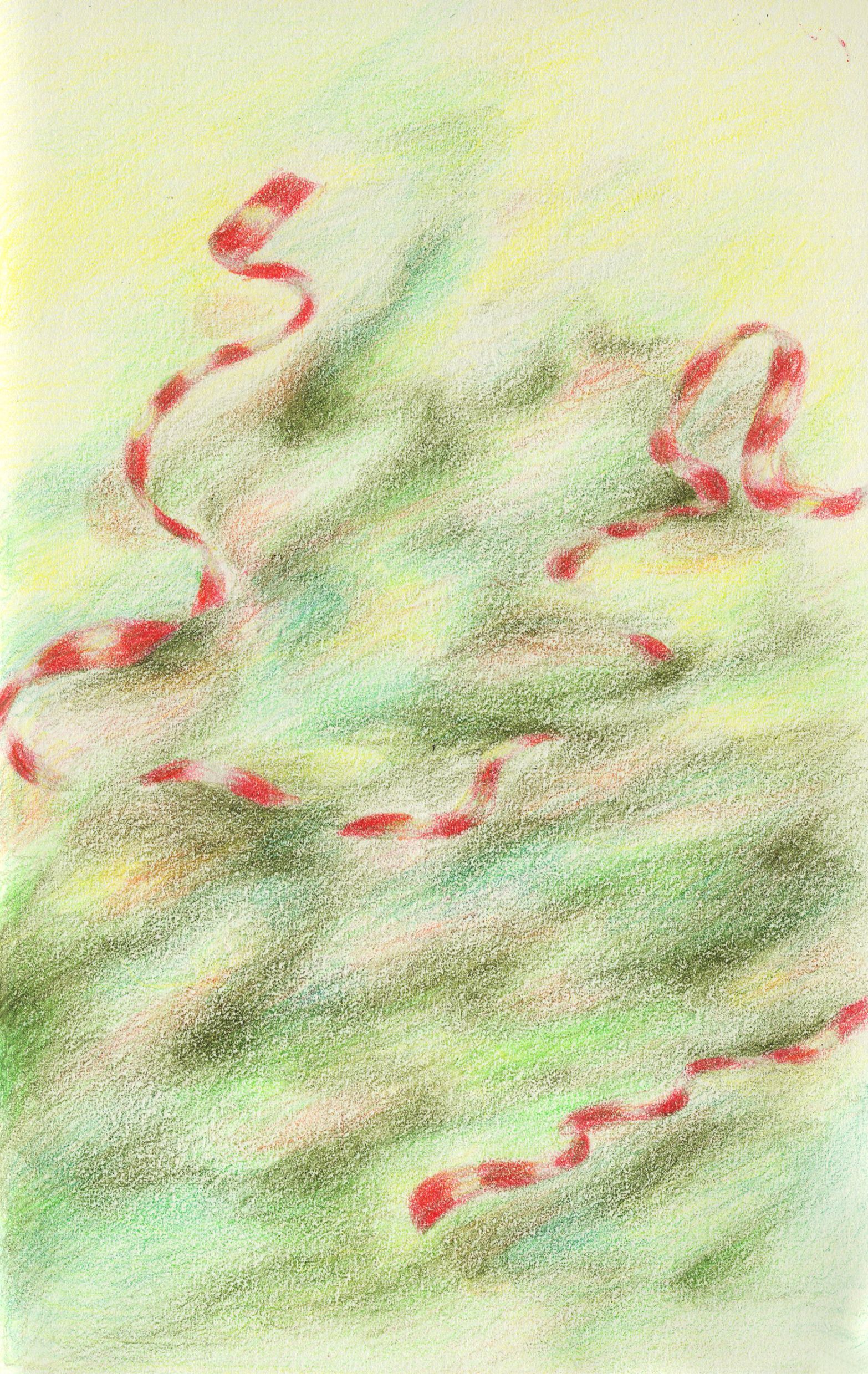 “ส่วนเรื่องเทคนิคในการทำงาน เราชอบทำงานกับสีไม้บนกระดาษ เหตุผลส่วนหนึ่งคือเป็นคนชอบกระดาษมาก ชอบความรู้สึกที่ได้สัมผัสมันไม่ว่าจะผ่านนิ้วมือตอนหยิบจับ ชอบกลิ่นของกระดาษ ชอบเสียงเวลาระบาย ชอบที่ได้สังเกตว่าสีไม้แท่งนี้พอใช้กับกระดาษคนละแบบได้สีและสัมผัสตอนระบายต่างกันอย่างไรบ้าง เราว่าสีไม้เป็นสีที่เข้าถึงง่ายมาก ๆ ถ้าย้อนภาพกลับไปในความทรงจำ เราคิดว่าเราเห็นมันในทุกช่วงเวลาเลย ภาพจำของสีไม้สำหรับเราคือวัยเด็ก การได้มาจับสีไม้ในตอนที่โตแล้วมันก็เลยให้ความรู้สึกที่น่าสนใจดี”